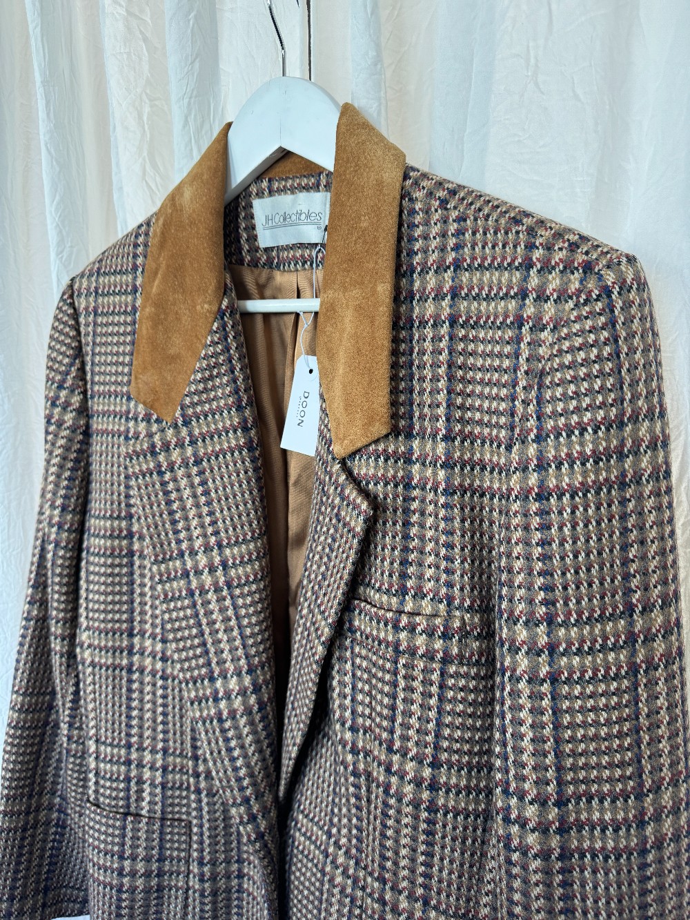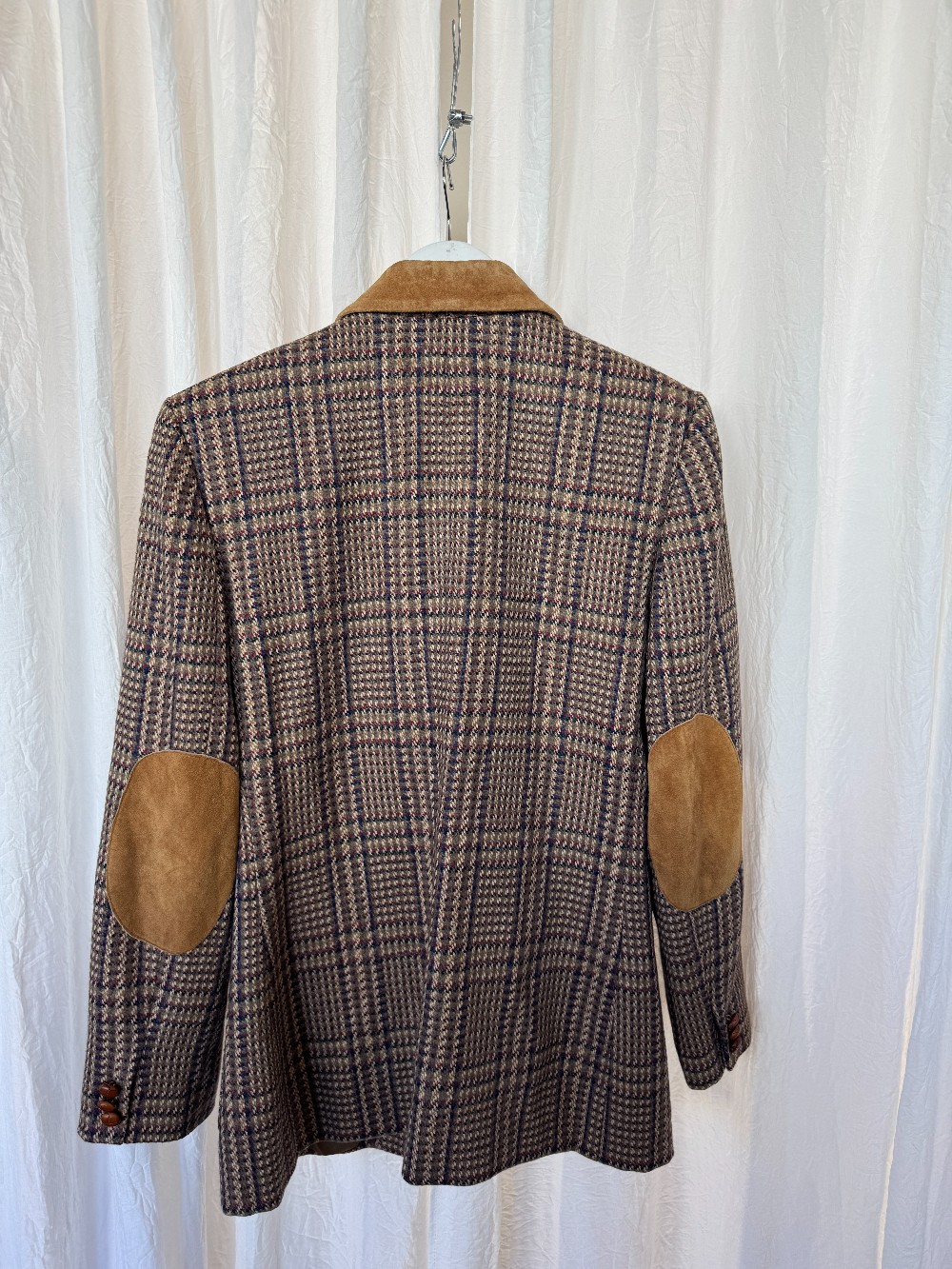 JH COLLECTIBLES 1990s wool tweed blazer with suede details. fully lined. no stretch.