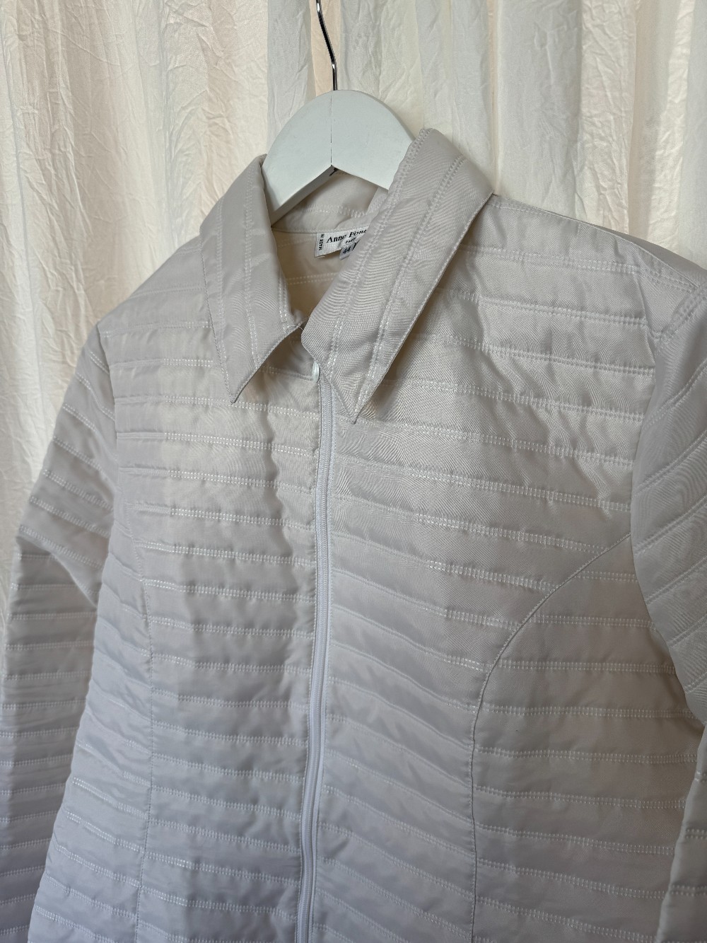 ANNE FONTAINE white puffer jacket. zip up. collar. very lightly padded puffer. unlined. more like a shell! made in france.