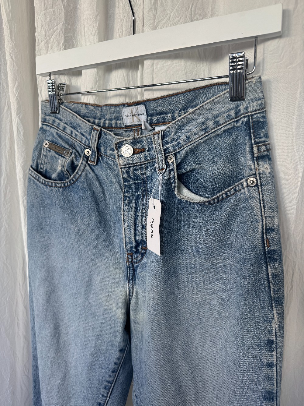 1990s CALVIN KLEIN light wash straight slim leg jeans. high rise.