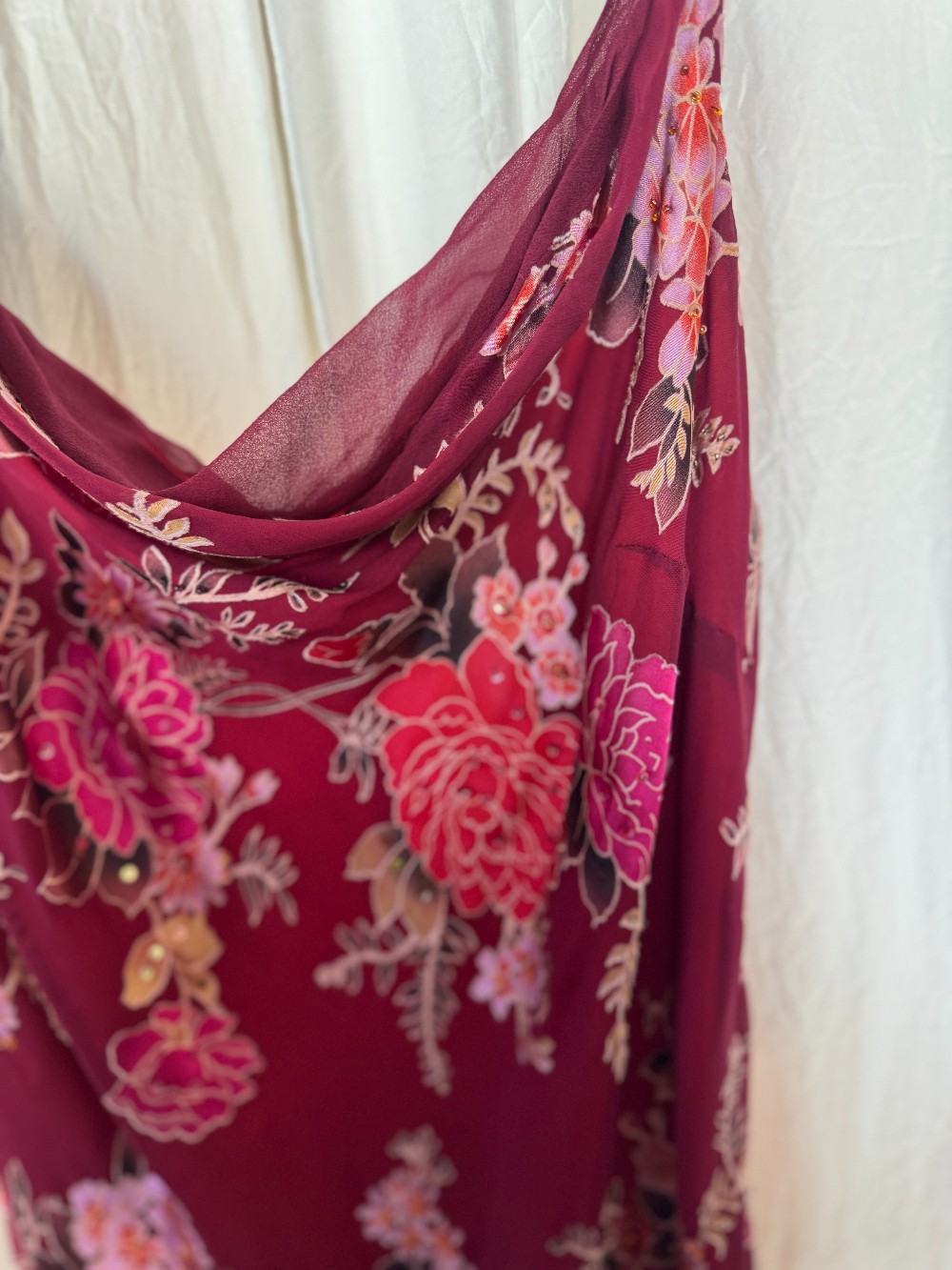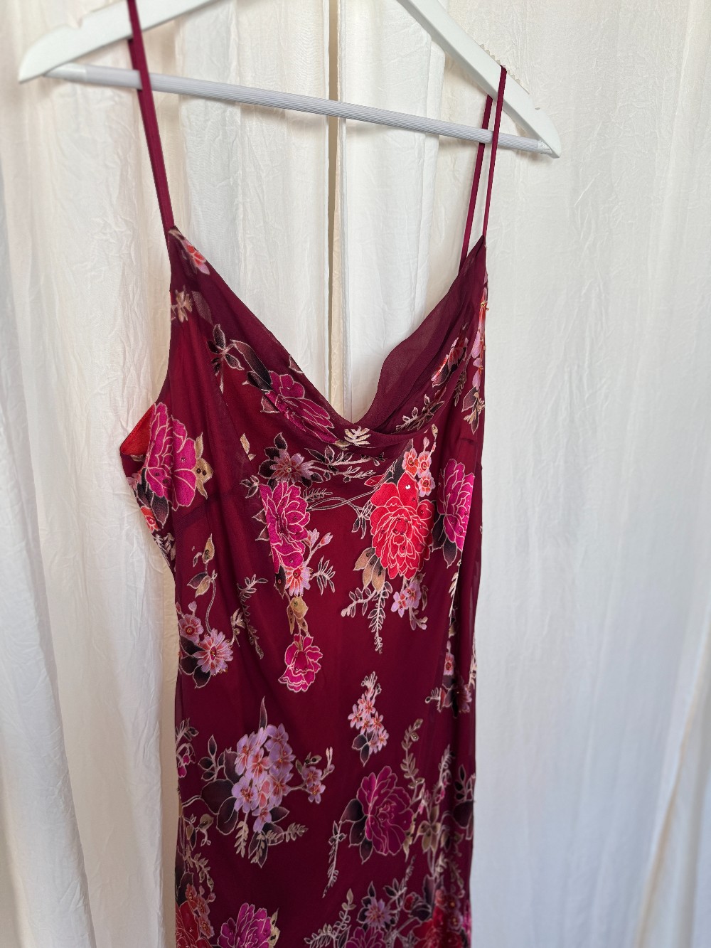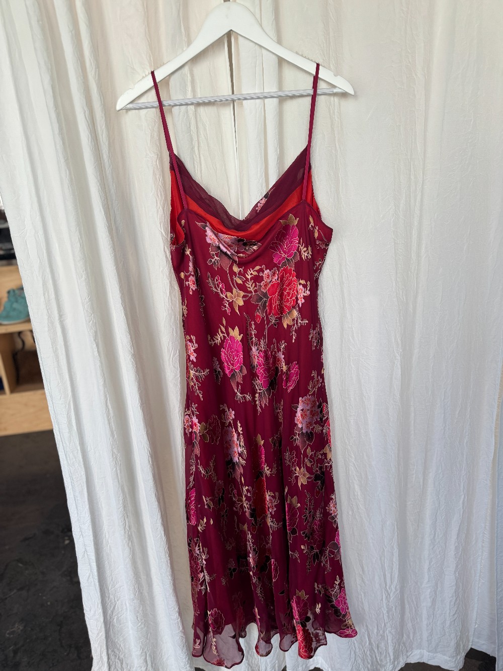 *Modern* and brand new! Monsoon silk slip dress with floral design and sequins throughout. Fully lined. Cowl neck. Bias cut.