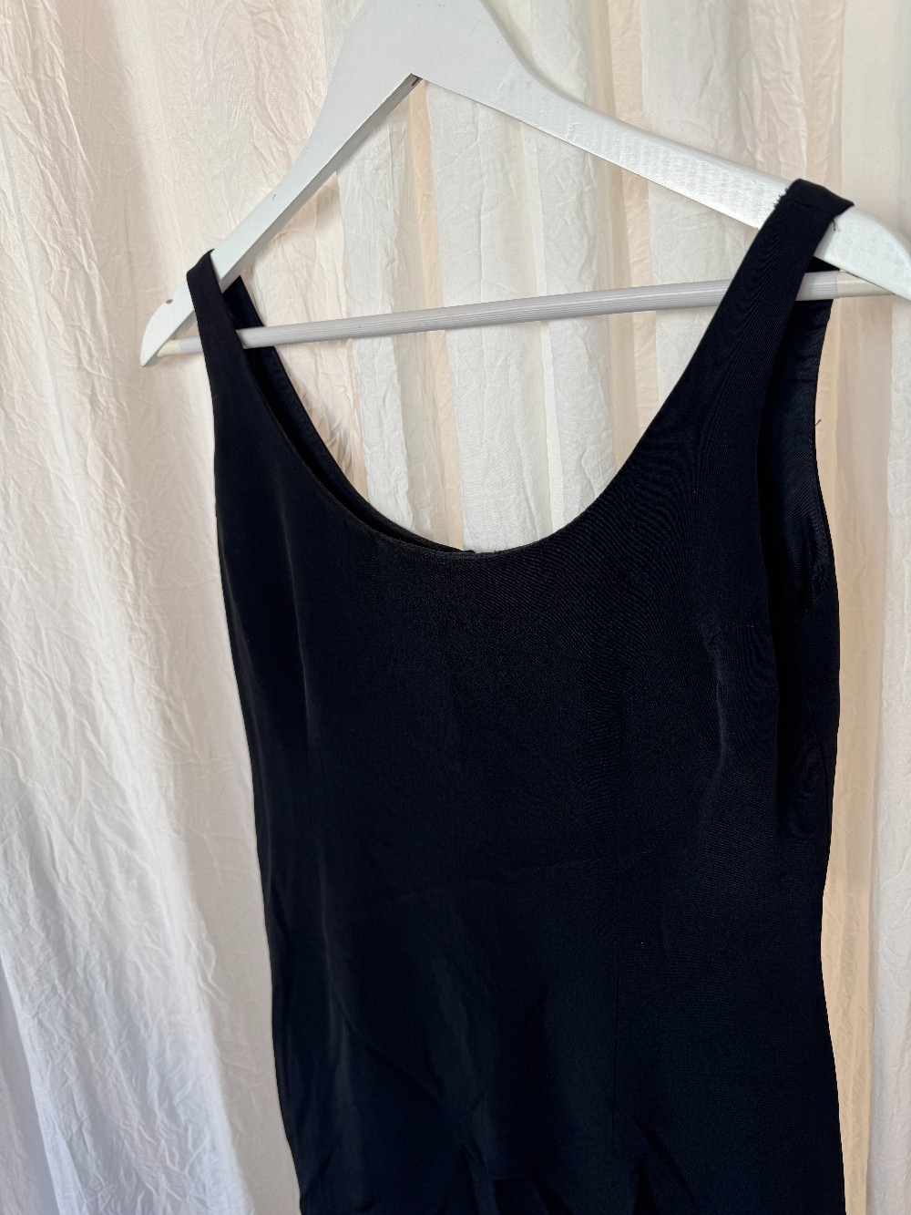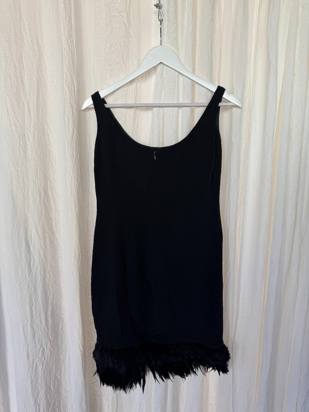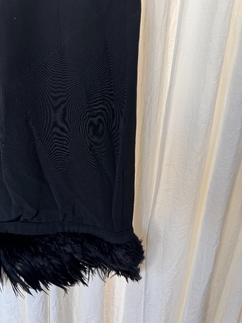 DANA BUCHMAN DRESSES black pencil dress with scoop neck, back zip and feather trim. non-stretch and fully lined.