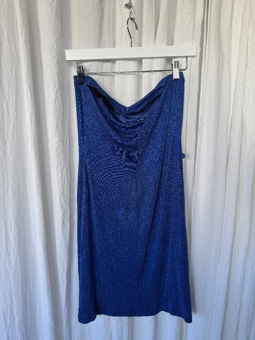 Y2K CHARLOTTE RUSSE royal blue sparkly and slinky tube dress. tiny belt loops, no belt. stretchy!