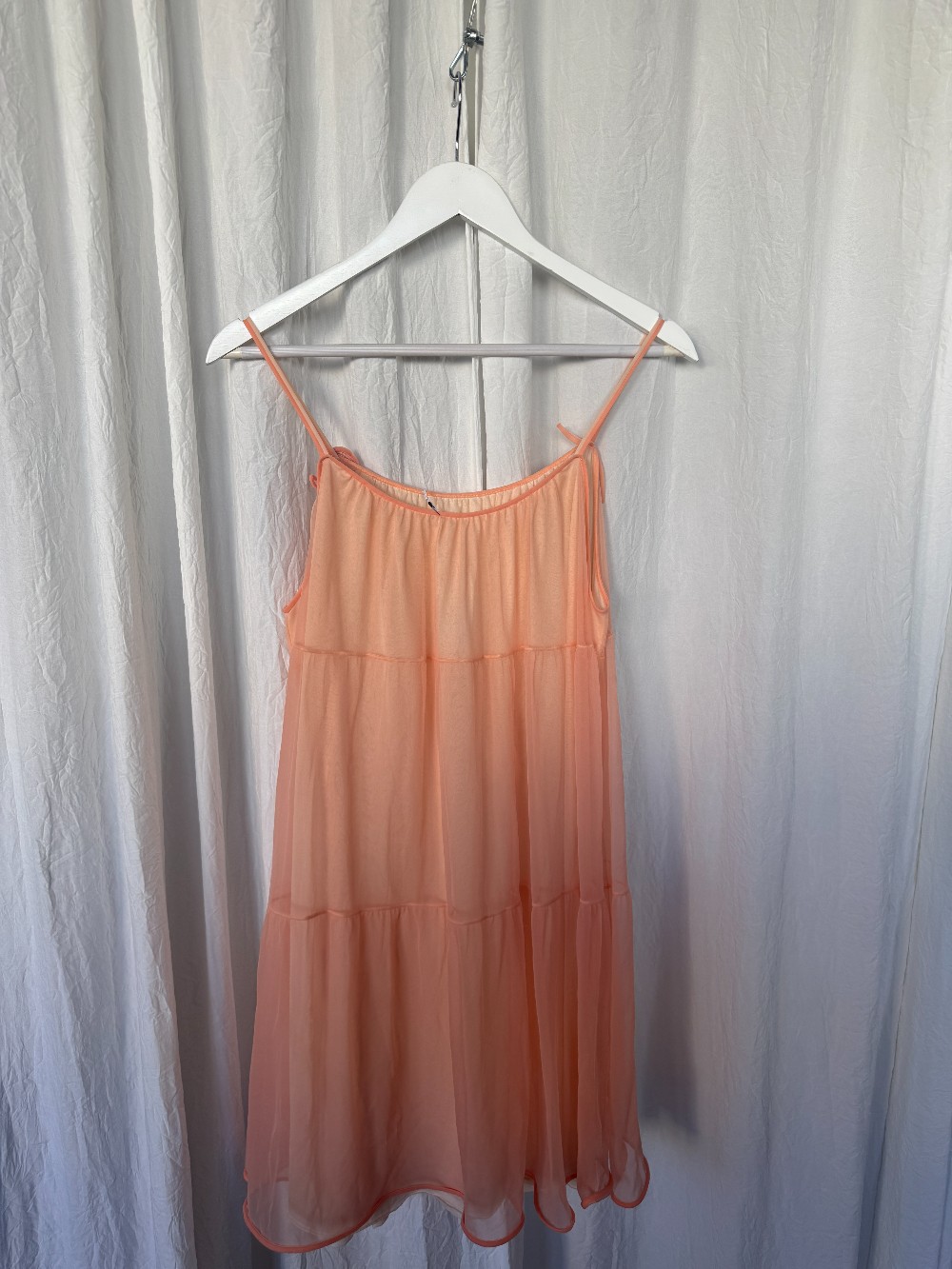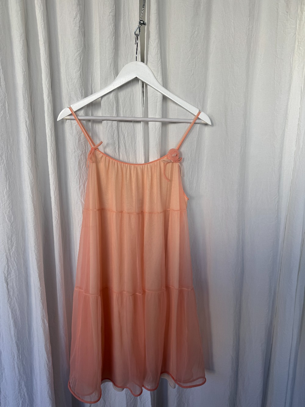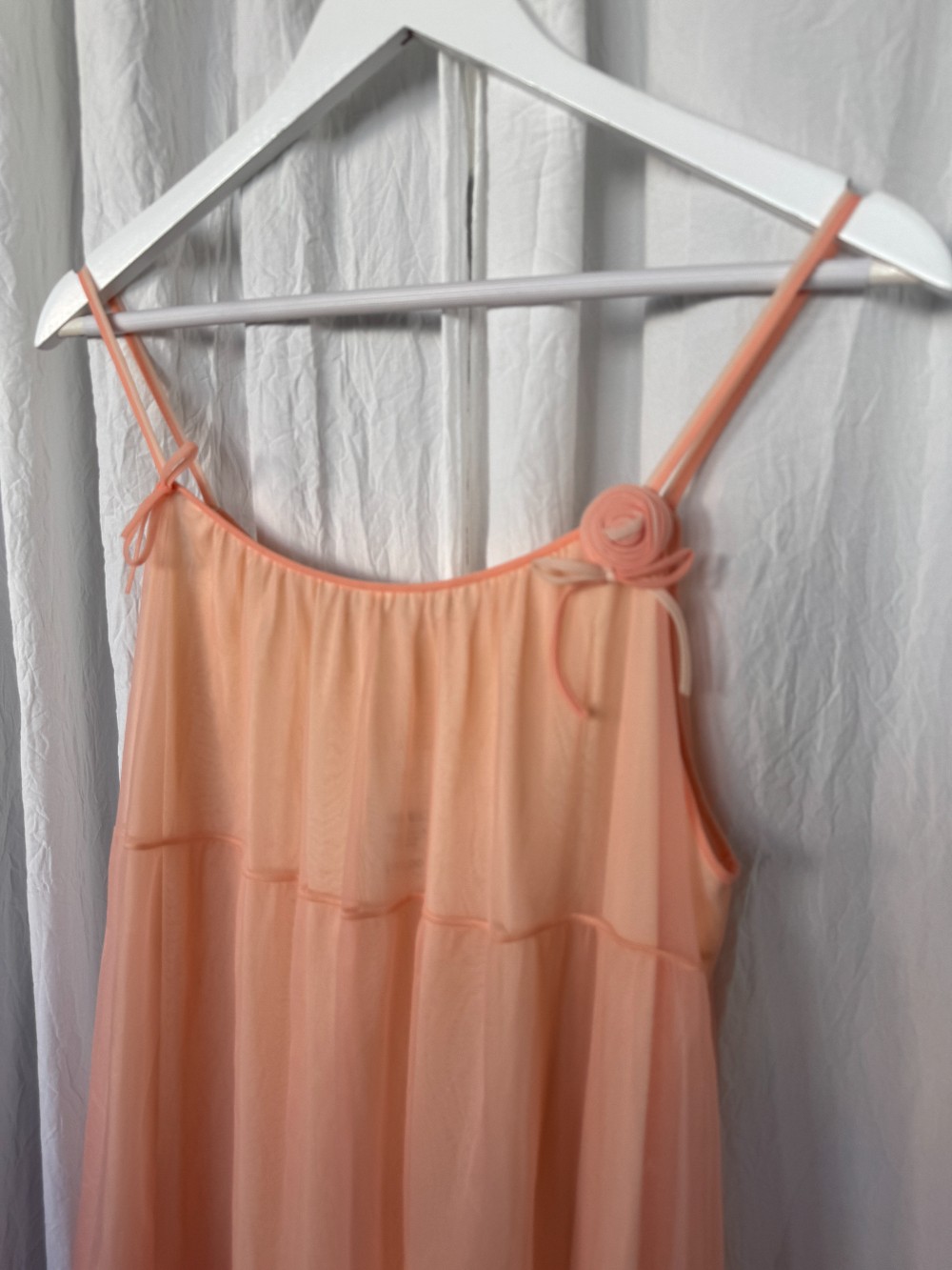 1970s Vassarette tiered orange sherbert nightie dress with rose florette. fully lined. oversized / loose fit.