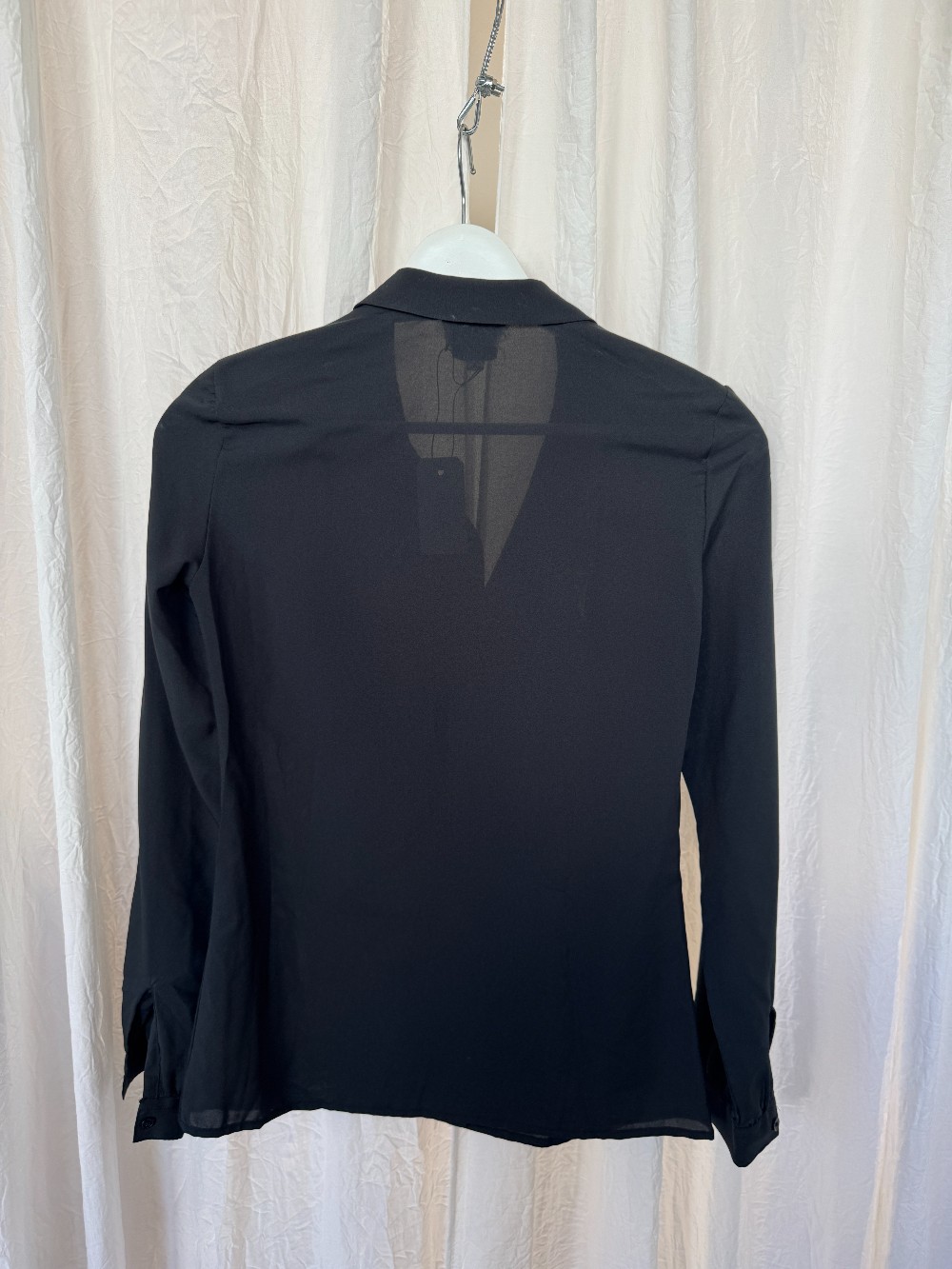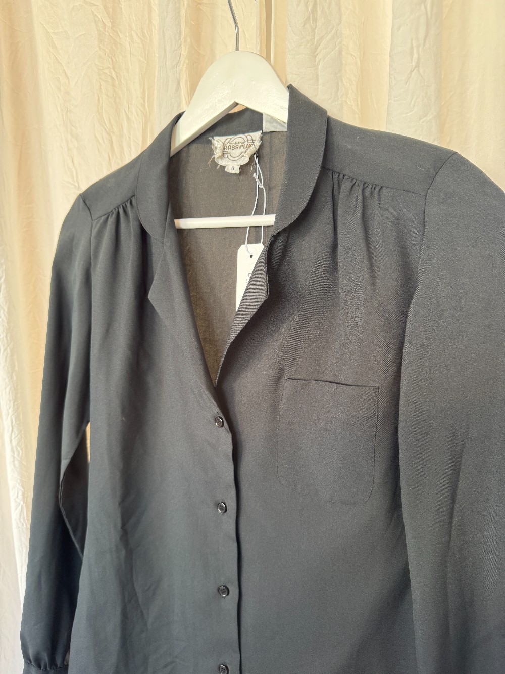 NORDSTROM - BRASS PLUM 1980s black button down shirt with collar. super lightweight. rare find!