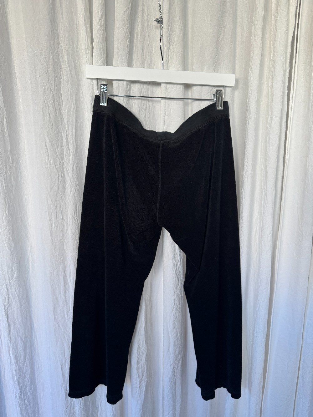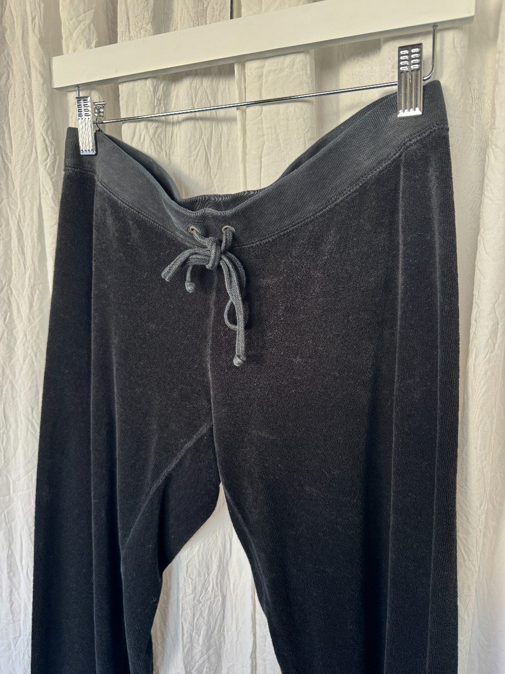 Y2K JUICY COUTURE black terry capri pant sweats. tie waist. stretch. low rise.