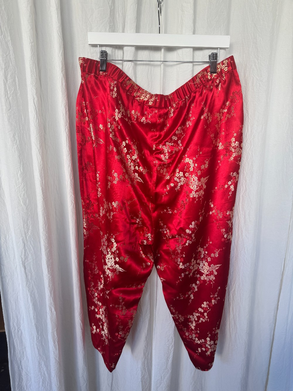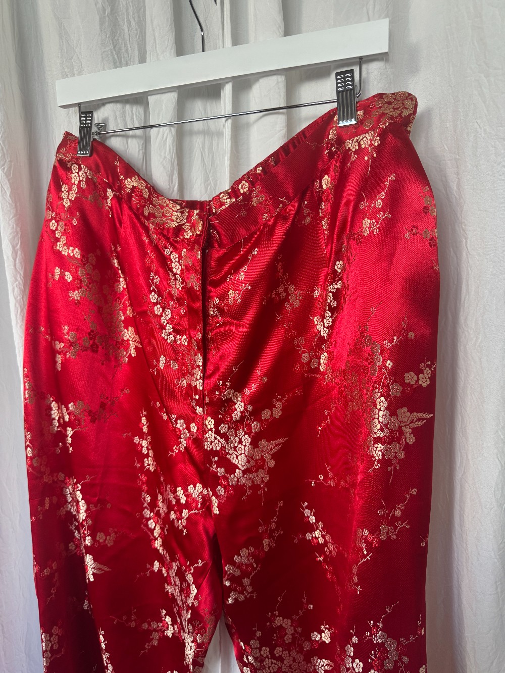 Y2K CAROLE LITTLE II red satin capri pants with red floral print. deadstock - new with tags and extra button