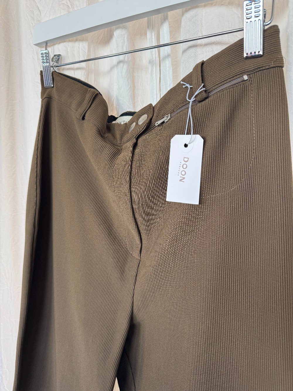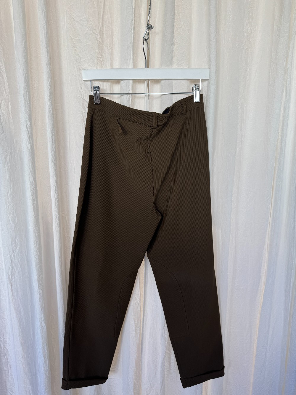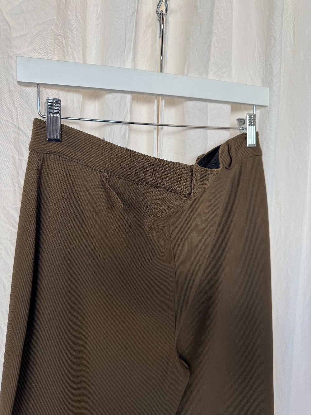 1990s ANN TAYLOR ribbed olive green slim leg pants with riding style panels at inner knees. non-stretch. button and snap closure. high waist.