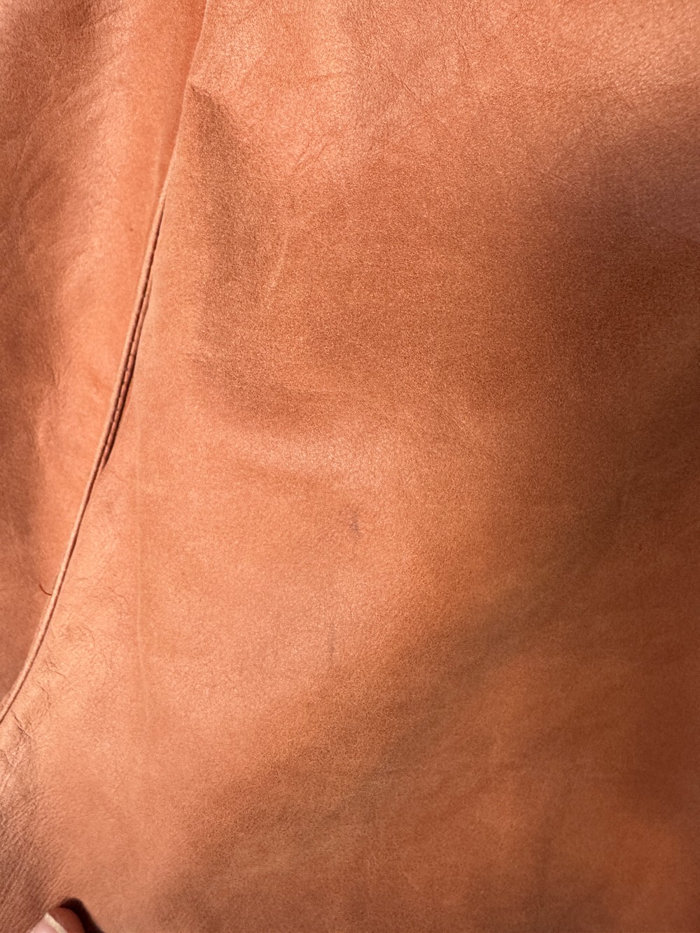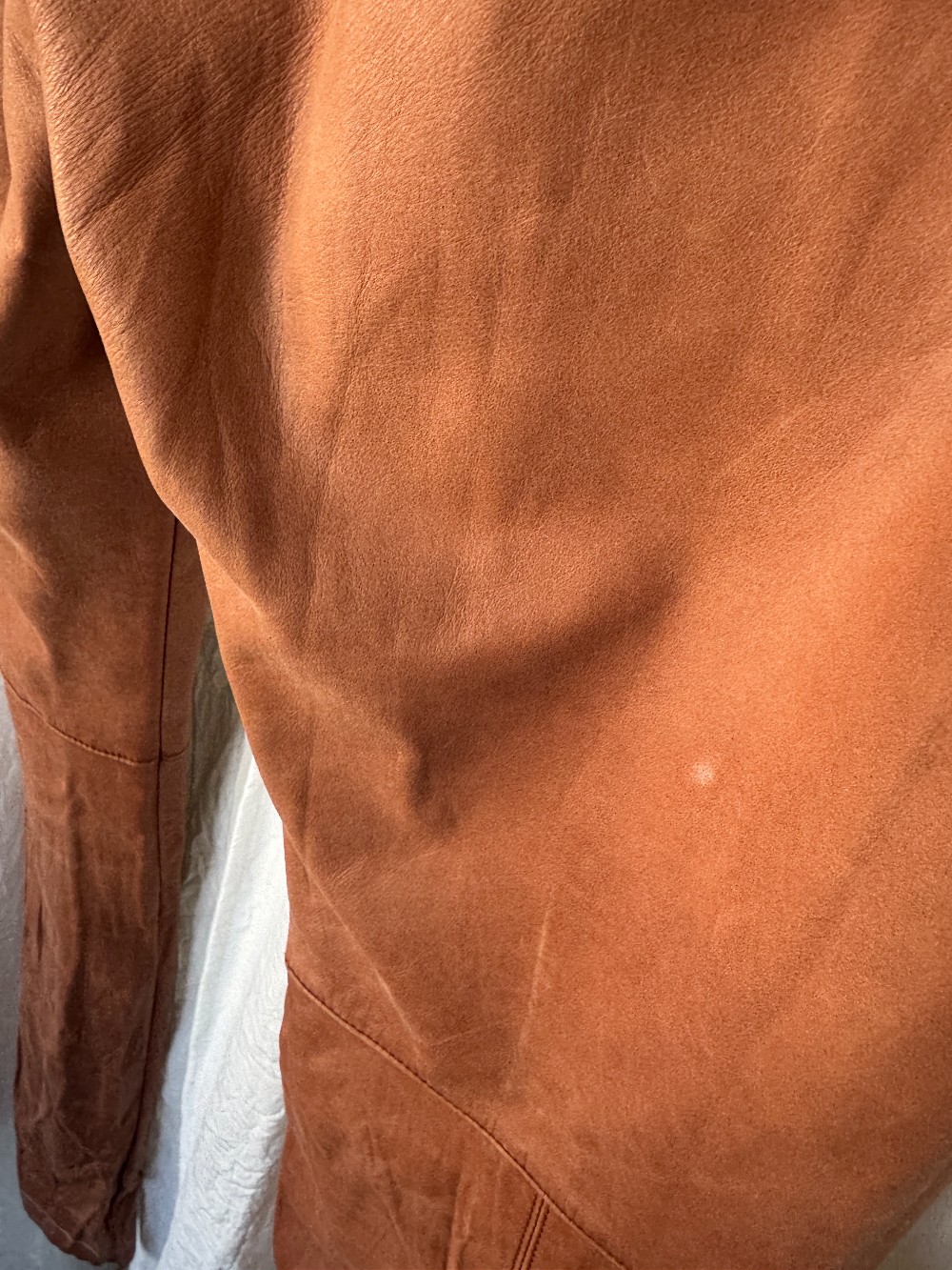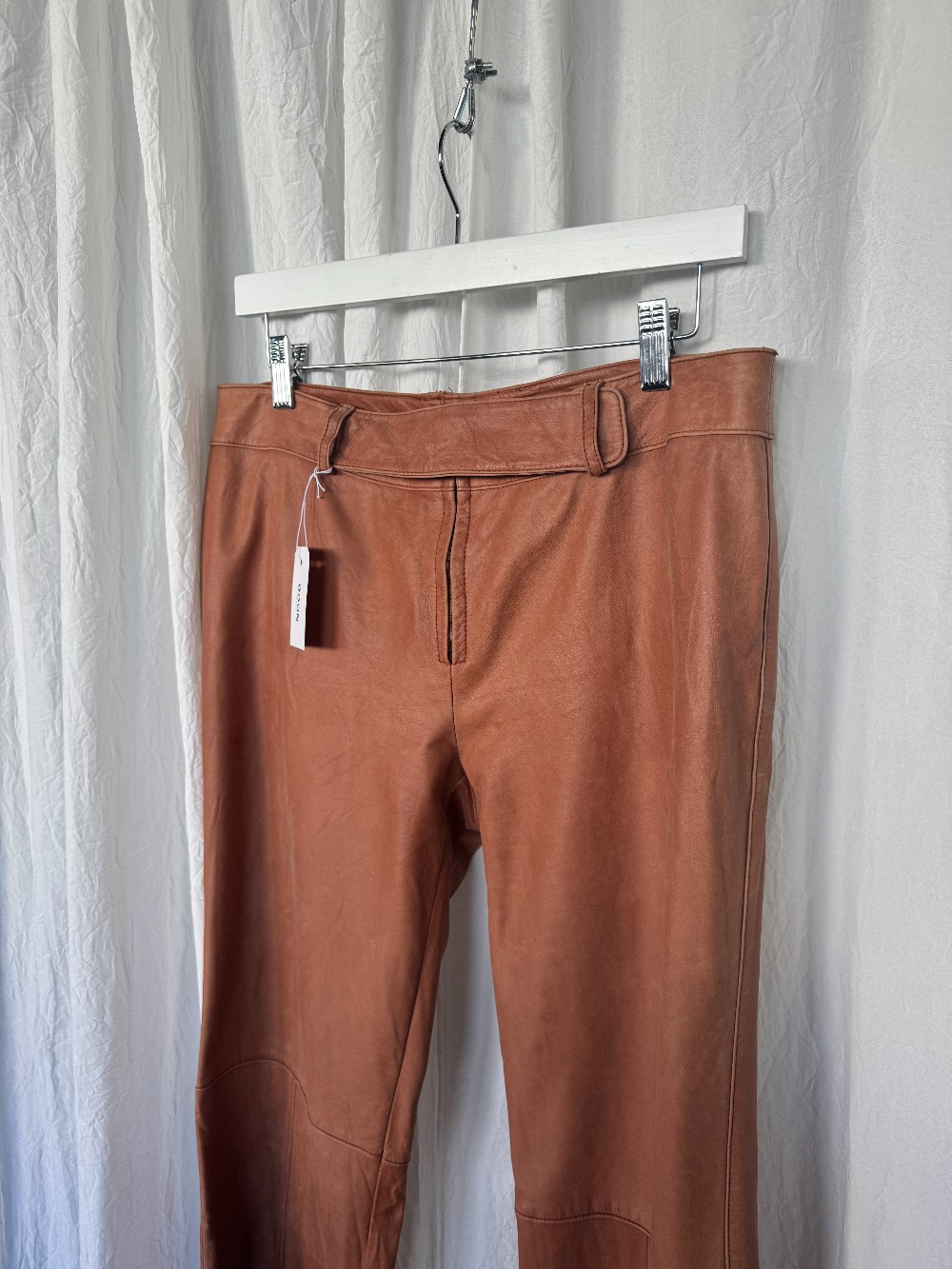 Vintage burnt orange/ carramel leather flare pants. zip and velcro closure. belt loops. non-stretch. lined until about mid thigh.